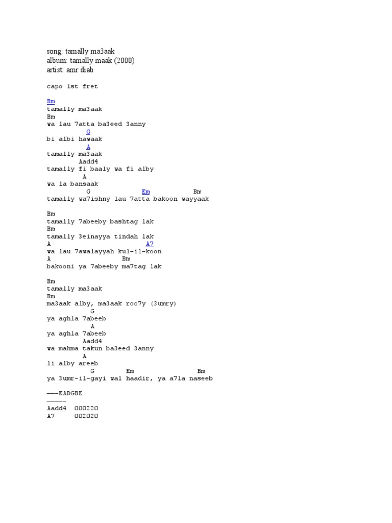 Music that moves me apple music playlists. Listen to tamally maak by amr diab, 842,991 shazams, featuring on amr diab: Tamally habibi bashtaklak tamally alaya men badlak we law hawalaya kol el doon bardo ya habibi bahtaglak.